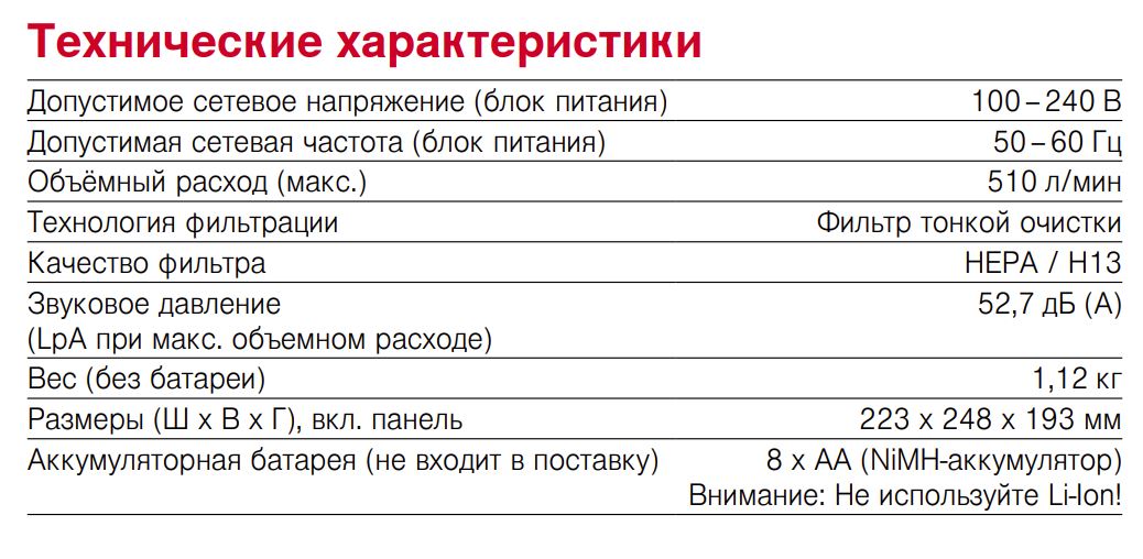 *Не входить до комплекту постачання. Для оптимального часу роботи (~ 45 хвилин) використовуйте 8 батарей 1,2 В/AA/2500 мАг NiMH.